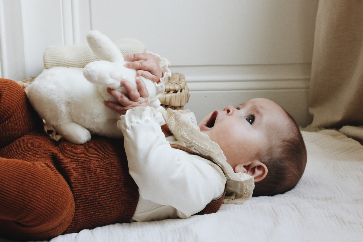 Nous aimons mettre en valeur les formes expressives des bébés : des bloomers qui dévoilent leurs cuisses potelées, des béguins qui encadrent leurs joues rebondies, des cols généreux qui illuminent leurs visages.